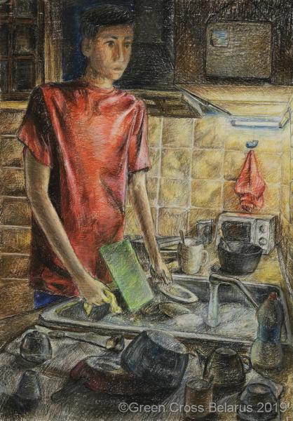 "«Автопортрет на кухне за мытьем посуды»"